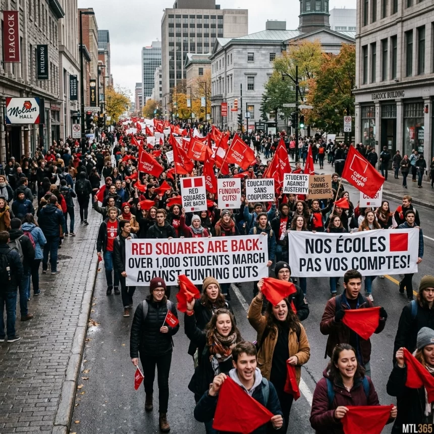 Red Squares are Back: Over 1,000 Students Hit Montreal Streets Against Funding Cuts