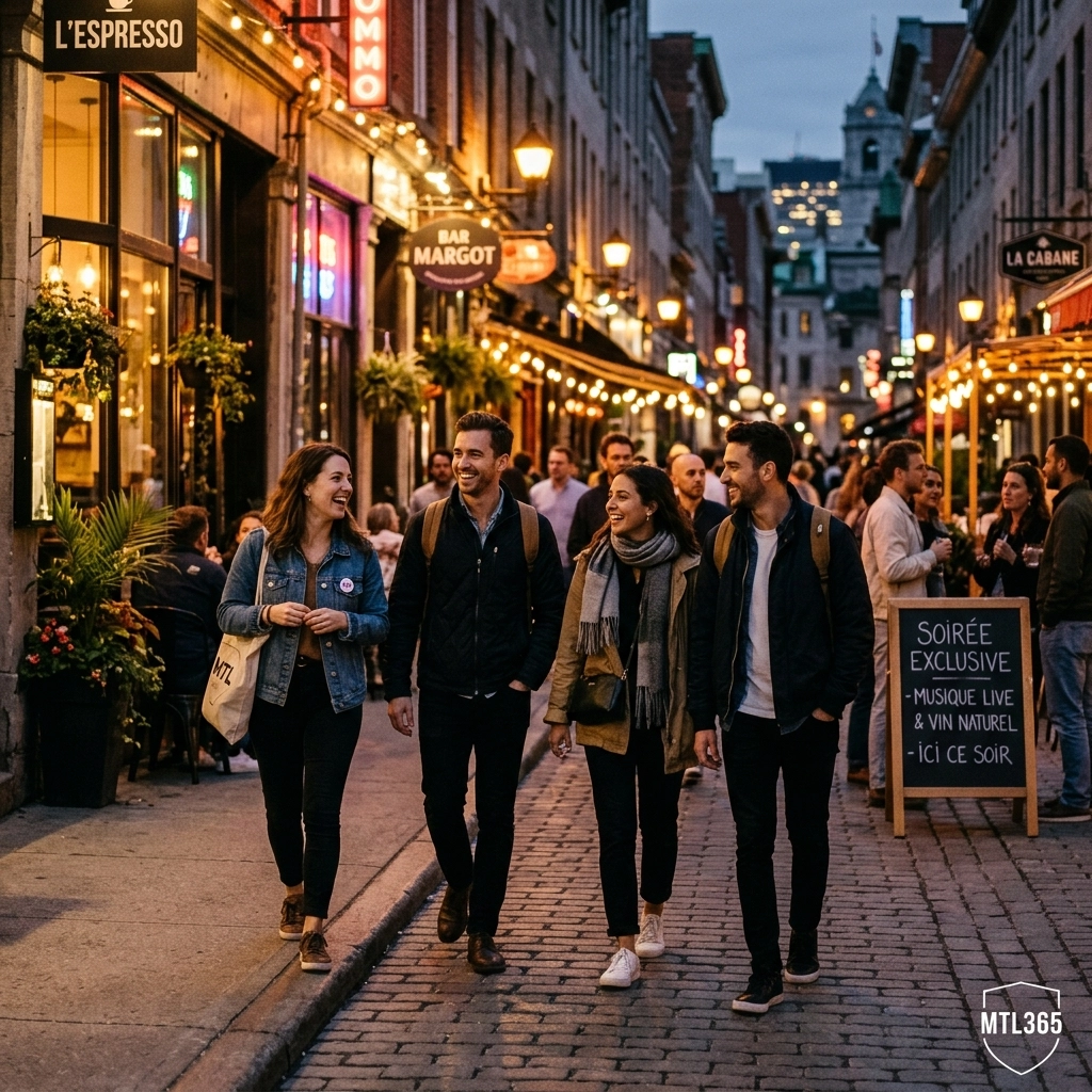 The cinq à sept (happy hour) is a Montreal institution. By 5:05 PM, every terrace with a heat lamp is full.